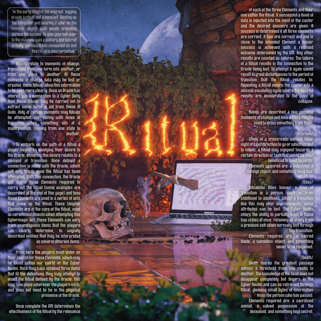 CyberFlora is a TTRPG system-agnostic tool for exploring Techno Paganism & utilising Cyber-Magic Rituals.