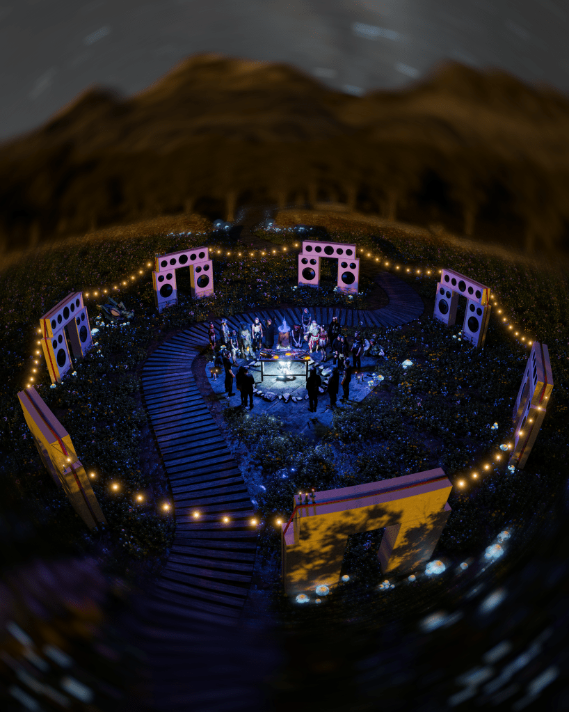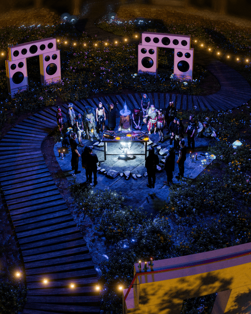 This render is an attempt to capture the surreal magic of 2025’s Nartex Odyssey, inspired by the wild set of Loto Retina that featured wizard hats, synth sorcery, and carole dancing.